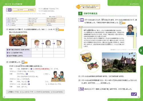 Marugoto is a coursebook for adult learners of Japanese that is based on the JF Standard* for Japanese Language-Education. Learners at Pre-Intermediate level (A2/B1) can express themselves concerning a range of matters directly related to their backgrounds and daily lives. They can also discuss their personal interests, giving simple opinions and the reasons behind them. Based on the philosophy of “Japanese for mutual understanding," each topic features people from a variety of cultural backgrounds interacting in Japanese. Hints about cross-cultural understanding, such as in dialog content, photos, and illustrations, can be found throughout the book. Marugoto also places importance on audio input for language learning, with many classroom activities for listening to natural conversation.