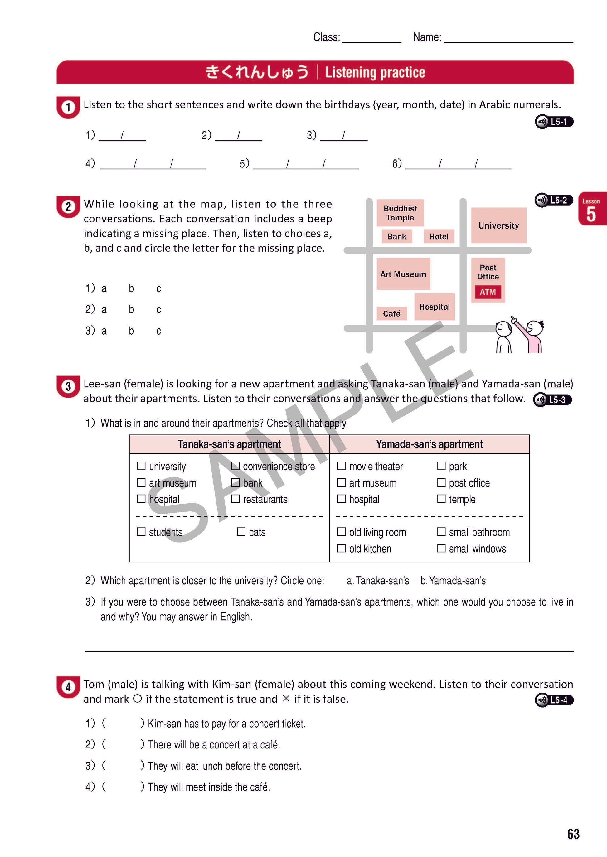 A workbook to strengthen the vocabulary, expressions, and grammar learned in "TOBIRA 1: Beginning Japanese" and to acquire Japanese "sentence-making ability" and "listening ability".